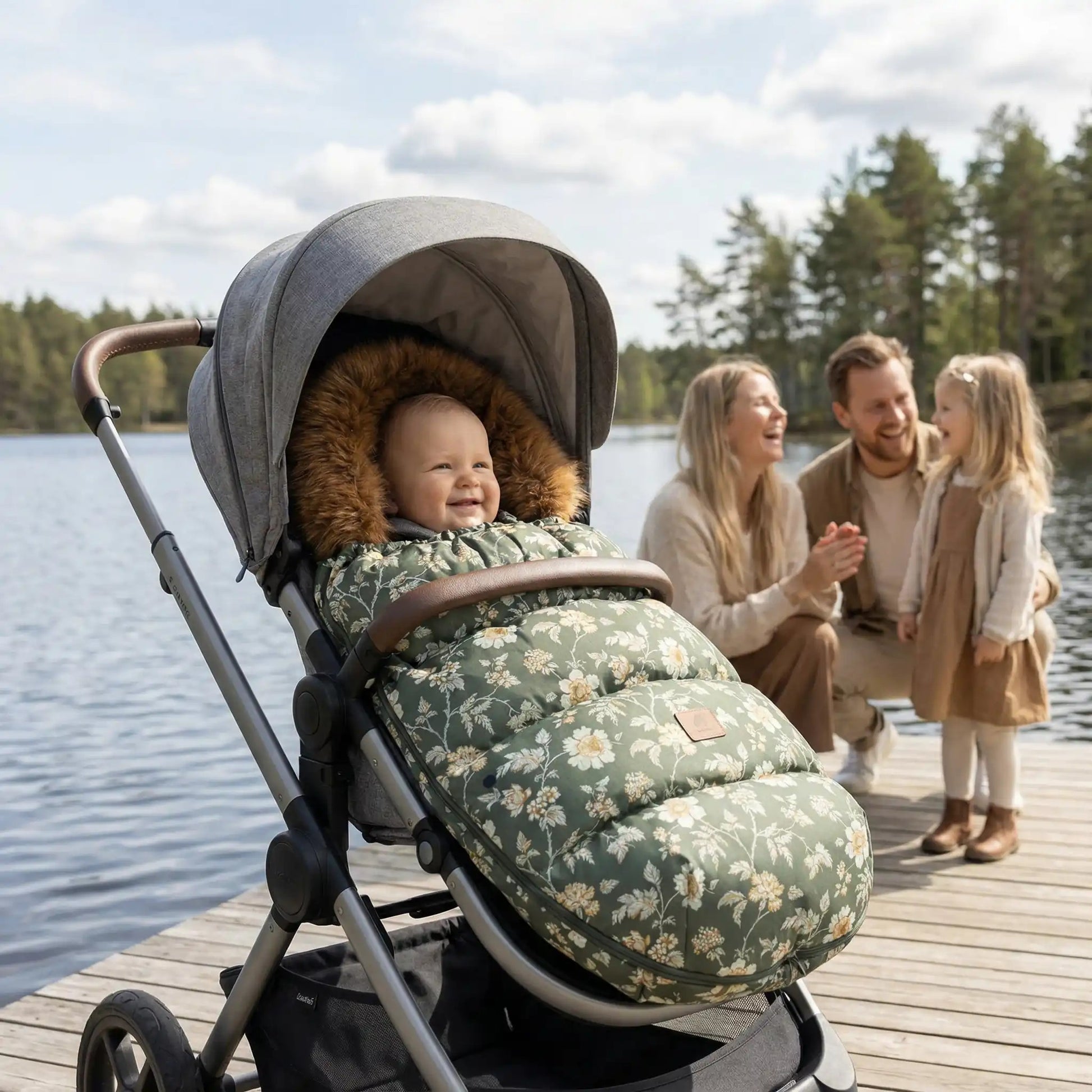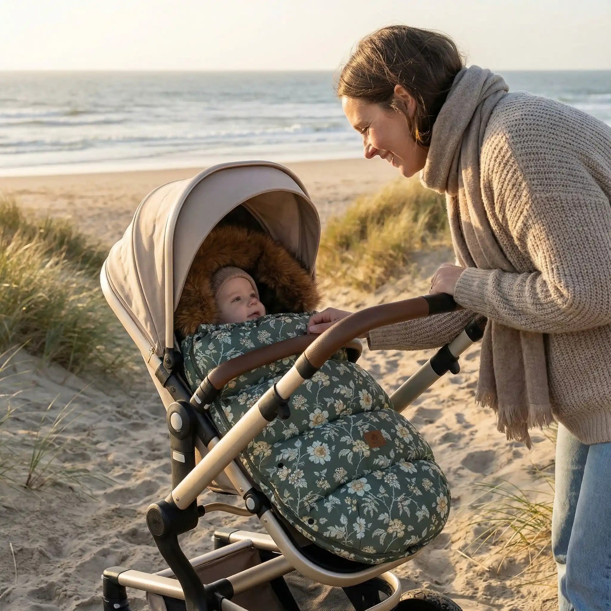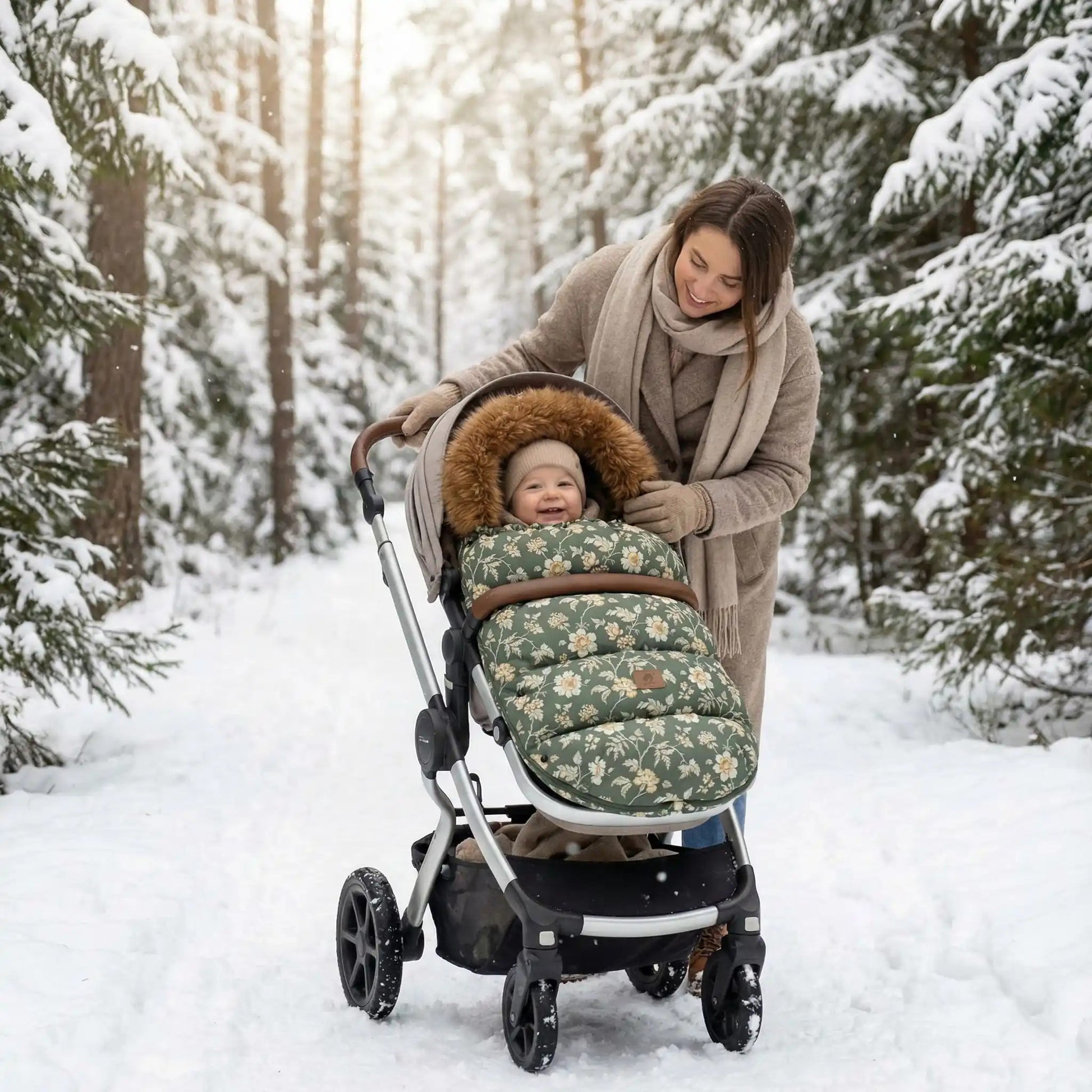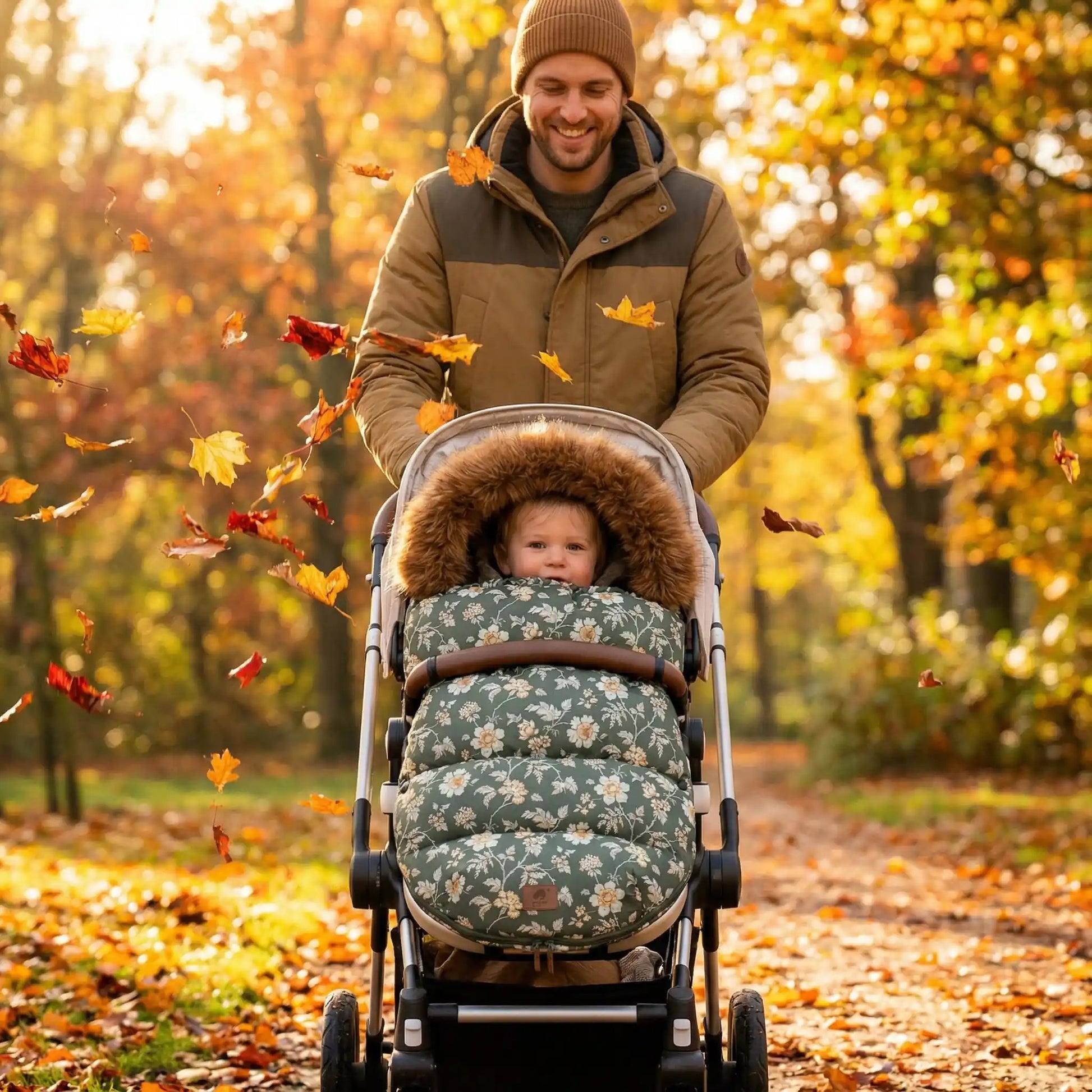 Fini le temps où vous hésitiez à sortir par crainte que bébé prenne froid ! Notre chanceliere poussette au joli motif vert fleuri crée un véritable nid douillet grâce à sa doublure en polaire ultra-douce.